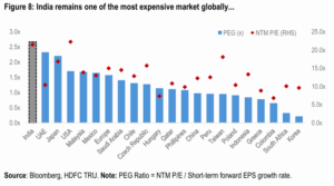 - Investors, seeking better risk-adjusted returns, found the entry points in Indian equities less appealing, leading to a rotation out of the market. The high valuation acted as a “drag,” meaning even positive news struggled to propel prices higher, while any negative news led to disproportionate selling.