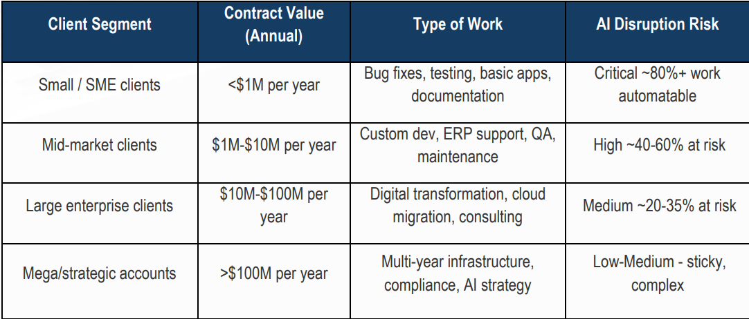 Not all clients will be impacted equally. The disruption follows a clear logic based on contract value and complexity: