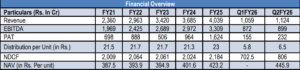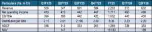 - Management guidance of DPU of Rs. 24.5 to 26.0 per unit for FY26