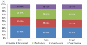 The Indian cement demand landscape for Fiscals 2026-2030 projects a nuanced shift in segmental contributions. While the housing segment is expected to remain the largest volume contributor. Concurrently, the infrastructure segment is poised for substantial expansion, with its share projected to rise to 31-33% by Fiscal 2030. This growth will be vigorously driven by the central government’s intensified focus on flagship schemes like PM Gati Shakti and robust investments across roads, railways, metros, airports, and irrigation projects.