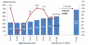 Between Fiscal 2026 and 2030, an estimated 200-250 million tonnes per annum (MTPA) of new grinding capacity is expected to be added, requiring an investment of approximately ₹1600-1700 billion. This represents a healthy increase, equivalent to about 1.2 times the capital expenditure incurred over the previous five-year period.