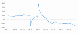 - The ongoing weakness in China’s economy, marked by a prolonged property-sector downturn, subdued credit growth, and fragile consumer confidence, poses a structural headwind to physical metals demand. · Moreover, an IMF paper (here) highlighted that a 1% slowdown in China’s industrial growth can lead to about 5–7% decline in metal prices over the following year, underscoring China’s outsized influence on metals demand. In a slowing China scenario, this sensitivity poses downside risk for metals, particularly Silver with its industrial exposure.