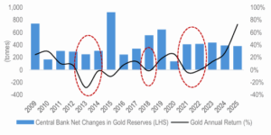 Figure 6: Despite Central Banks being net buyers of Gold every single year since 2008, history shows that periods of aggressive price appreciation have been followed by meaningful corrections…