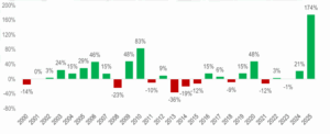 Figure 3: Silver – Calendar Year Returns (%, US$)