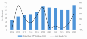 Figure 15: …While Global Gold ETF Holdings (in millions oz) increased at a CAGR of >10% over the last 2 years