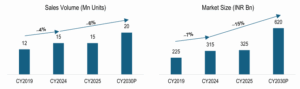 India is at a critical economic turning point, with its GDP per capita approximately $2,880 (₹ 2,53,440) in 2025. This figure which falls within the key $2,000-$3,000 range historically marks the beginning of accelerated consumer spending, particularly on Fast-Moving Electrical Goods (FMEG). Global evidence from economies like China, the US, and Brazil shows that once this threshold is crossed, demand for appliances and electronics surges. By 2030, India’s projected per capita GDP of roughly $4,469 (₹ 3,79,826) positions it for a rapid, high-growth consumption trajectory, mirroring these other nations.