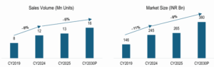 India’s retail sector: India’s retail sector is undergoing rapid expansion and has grown at a CAGR of ~6% from CY2019 to CY2024. It is projected to grow at ~9% to reach US$ ~1,447-1,588 billion by CY2029P, fueled by increased disposable incomes, a shift toward organized retail, and robust growth in e-commerce.