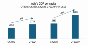 Despite India’s current per-capita retail spending being modest compared to other markets, the low base offers significant room for further growth.